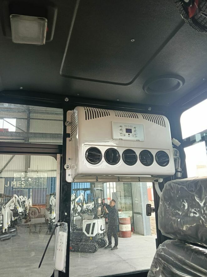 • Komfortowa, zamknięta kabina: Przeszklona z każdej strony (doskonała widoczność 360 stopni), wyposażona w nawiewy/wentylację, dzięki czemu praca w kurzu czy gorszych warunkach pogodowych nie jest problemem.